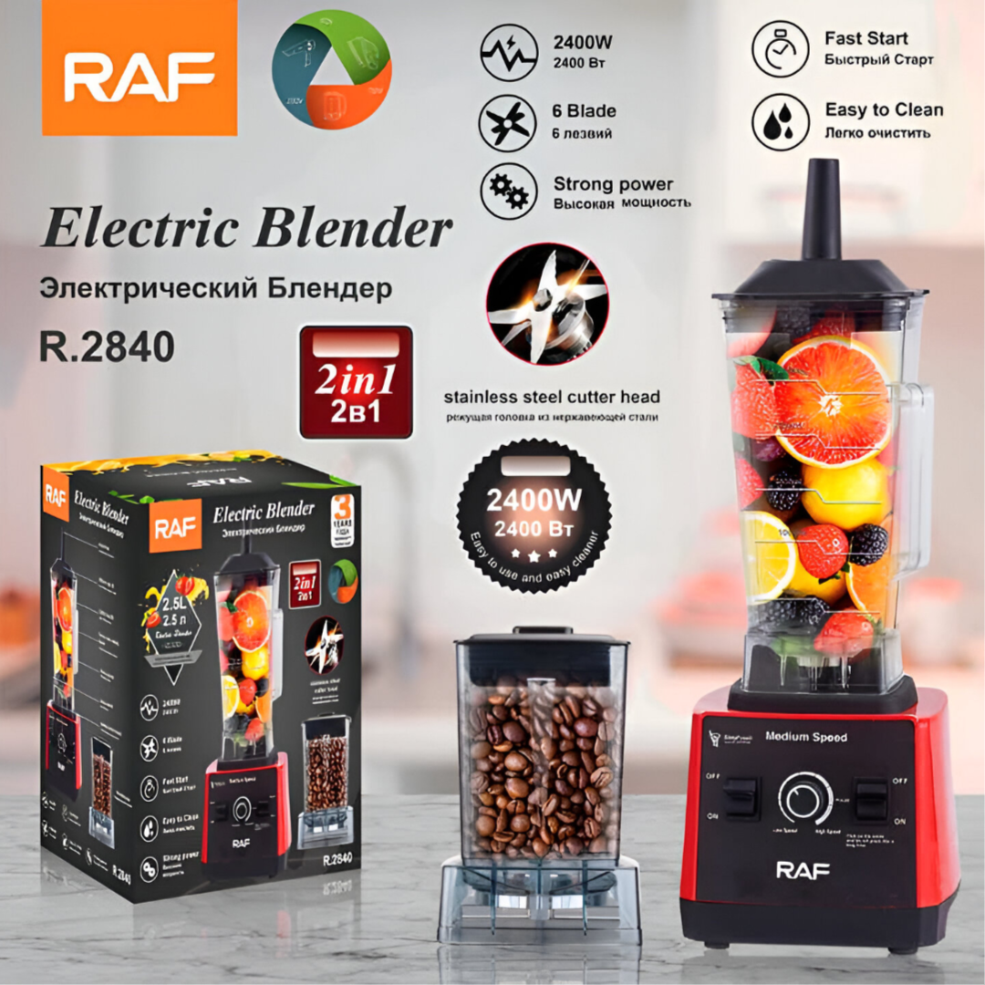 RAF high standard electric home kitchen professional electric mixer multi-speeds electric blender.power: 2400wrated voltage: 220vrated frequerency: 50/60Hzcapacity: 2.5 Liter6 stainless...