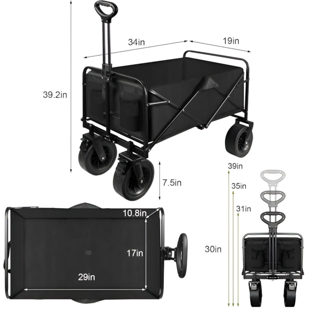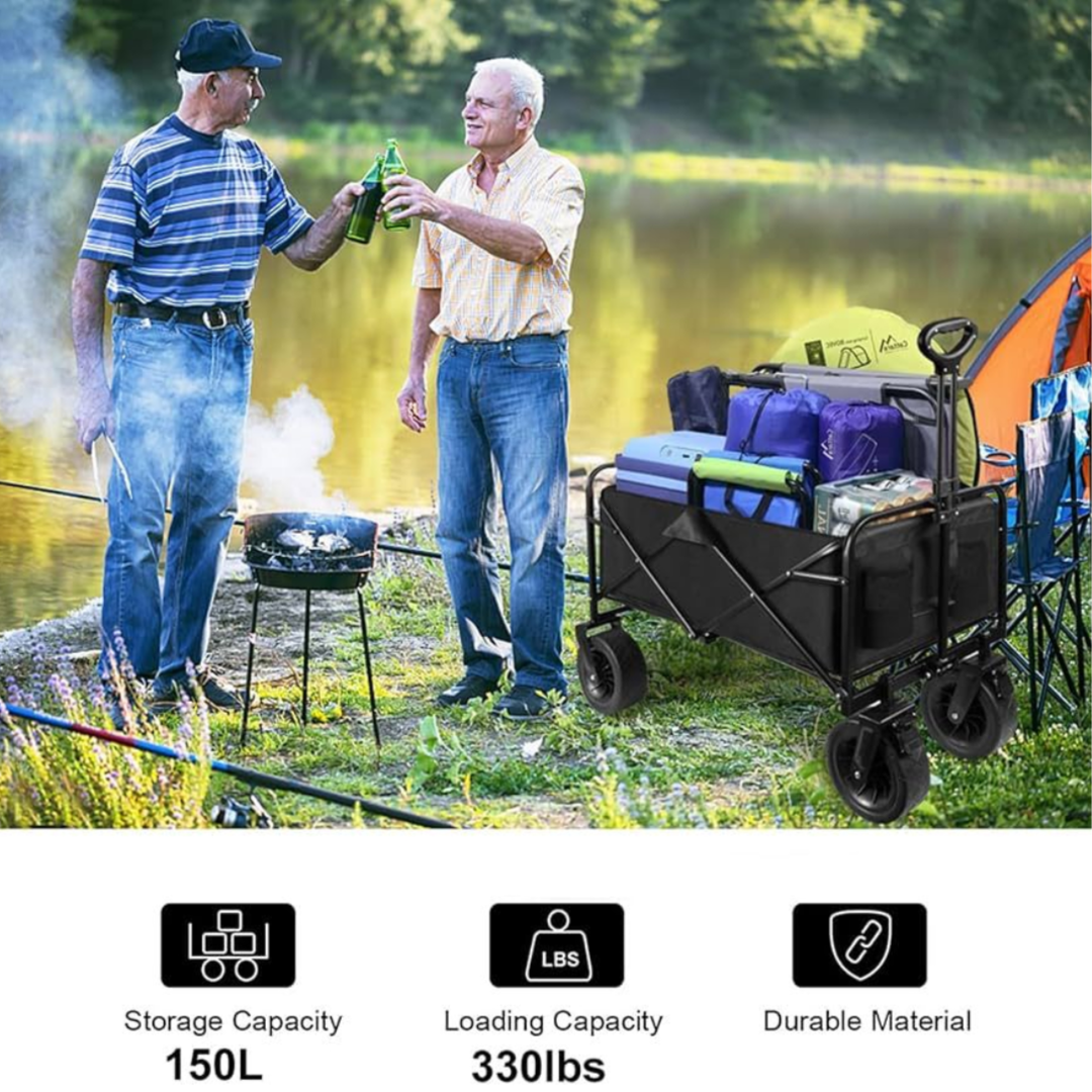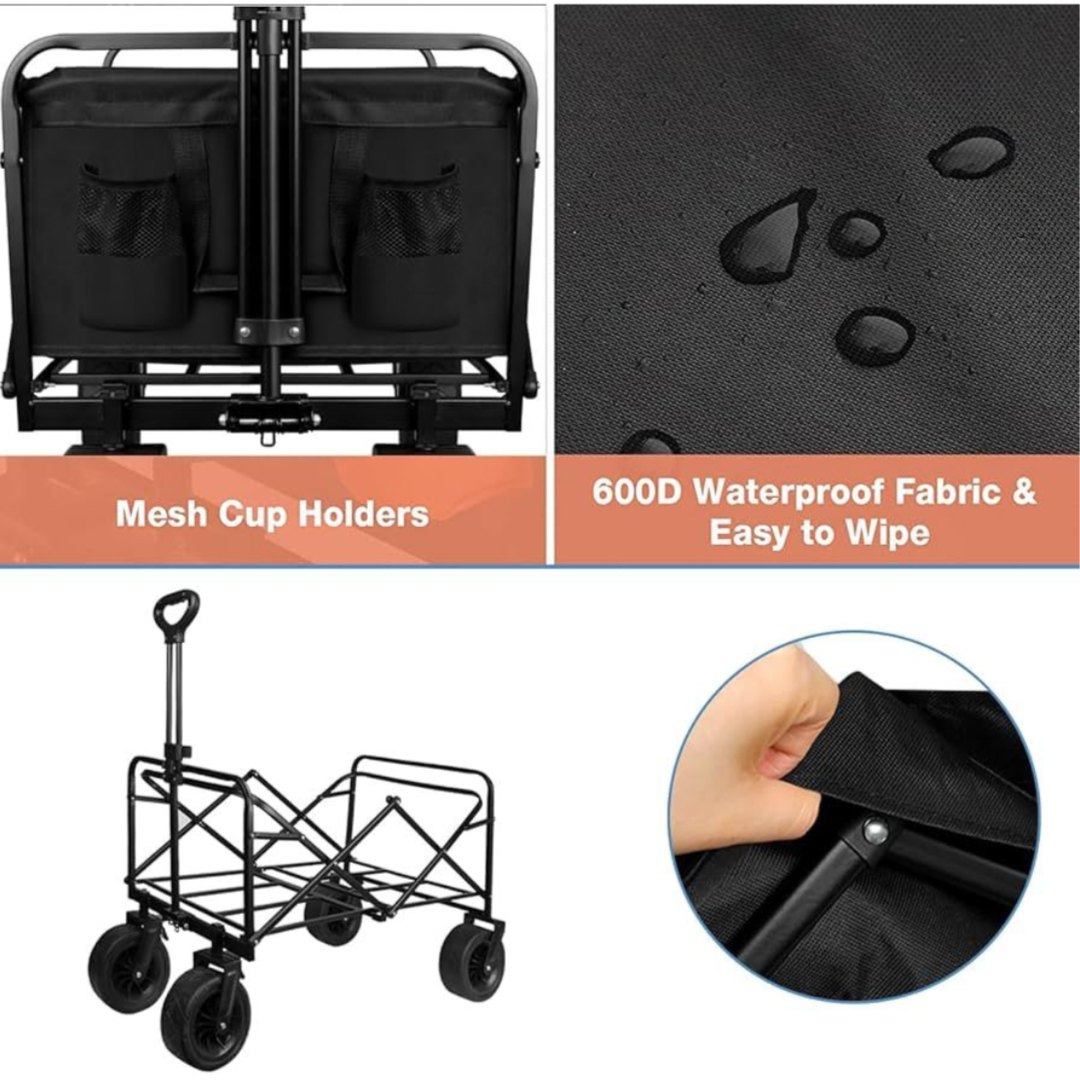 Foldable Wagon, Beach Cart Large Capacity, Heavy Duty Folding Wagon Portable, Collapsible Wagon for Sports, Shopping, Camping
