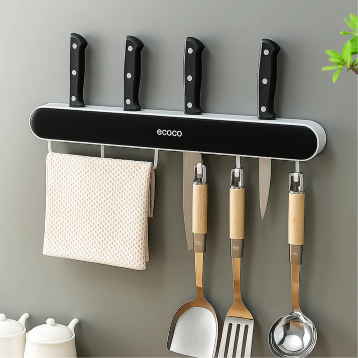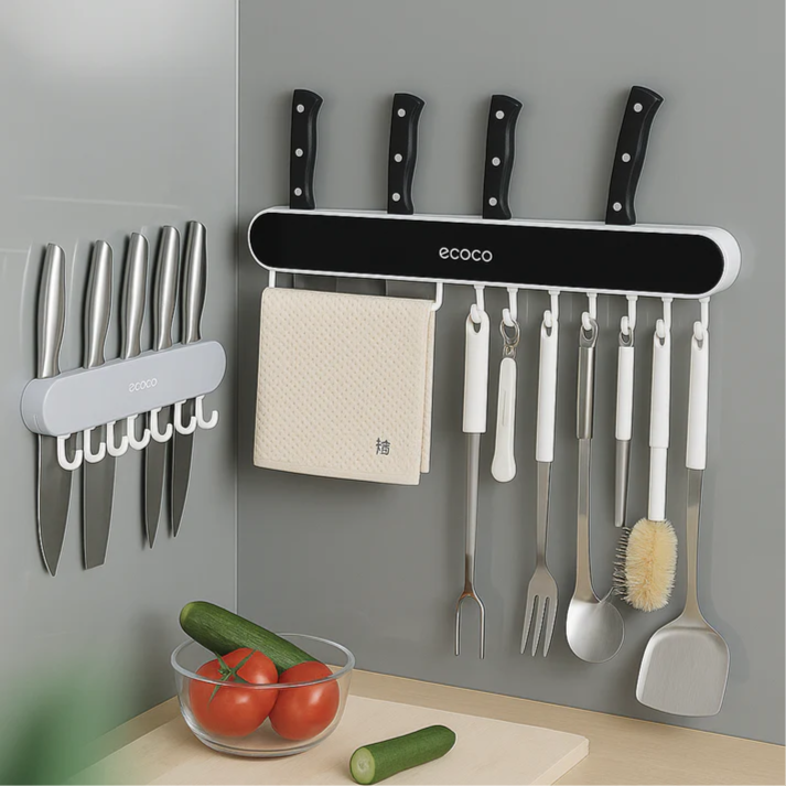 The ecoco Kitchen Storage Rack is a space-saving wall-mounted organizer that keeps your cooking tools in easy reach. With built-in...