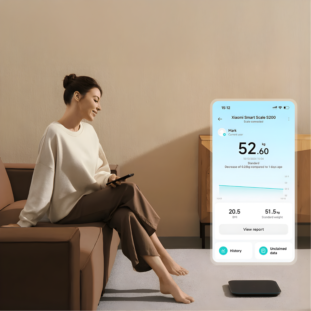 The Xiaomi Smart Scale S200 not only measures your weight, BMI and other body metrics in real-time, but also calculates your ideal weight based on your height and age and provides weight control recommendations to reduce health risks from unhealthy dieting and extreme weight loss